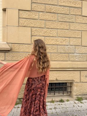 Déjate envolver por la ligereza y el estilo de nuestra capa de gasa, diseñada para aportar un toque chic y sofisticado a tus looks más especiales. Confeccionada en una gasa suave y vaporosa, se presenta en una paleta de colores variada y armoniosa, perfecta para resaltar tu estilo esta temporada.