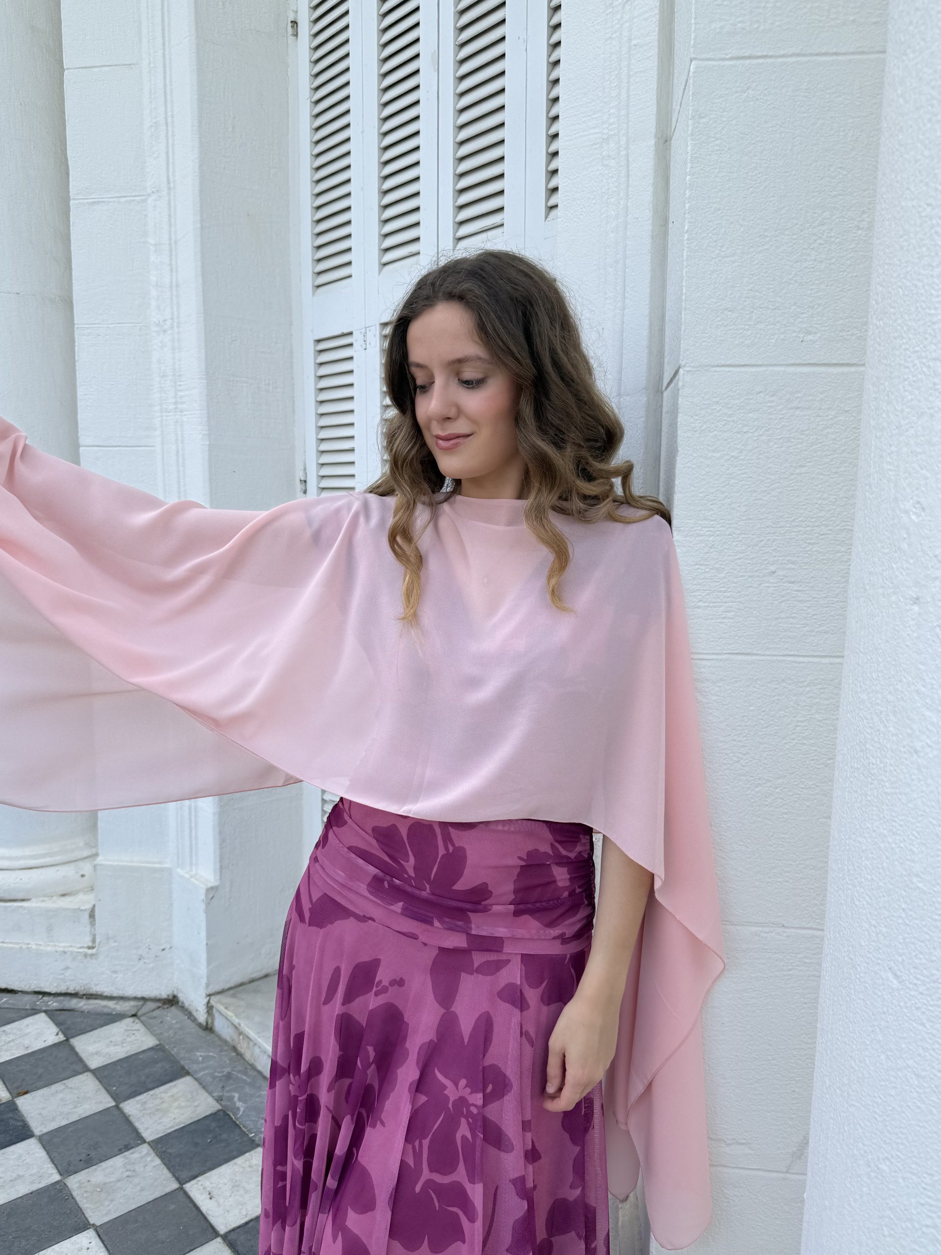 Déjate envolver por la ligereza y el estilo de nuestra capa de gasa, diseñada para aportar un toque chic y sofisticado a tus looks más especiales. Confeccionada en una gasa suave y vaporosa, se presenta en una paleta de colores variada y armoniosa, perfecta para resaltar tu estilo esta temporada.