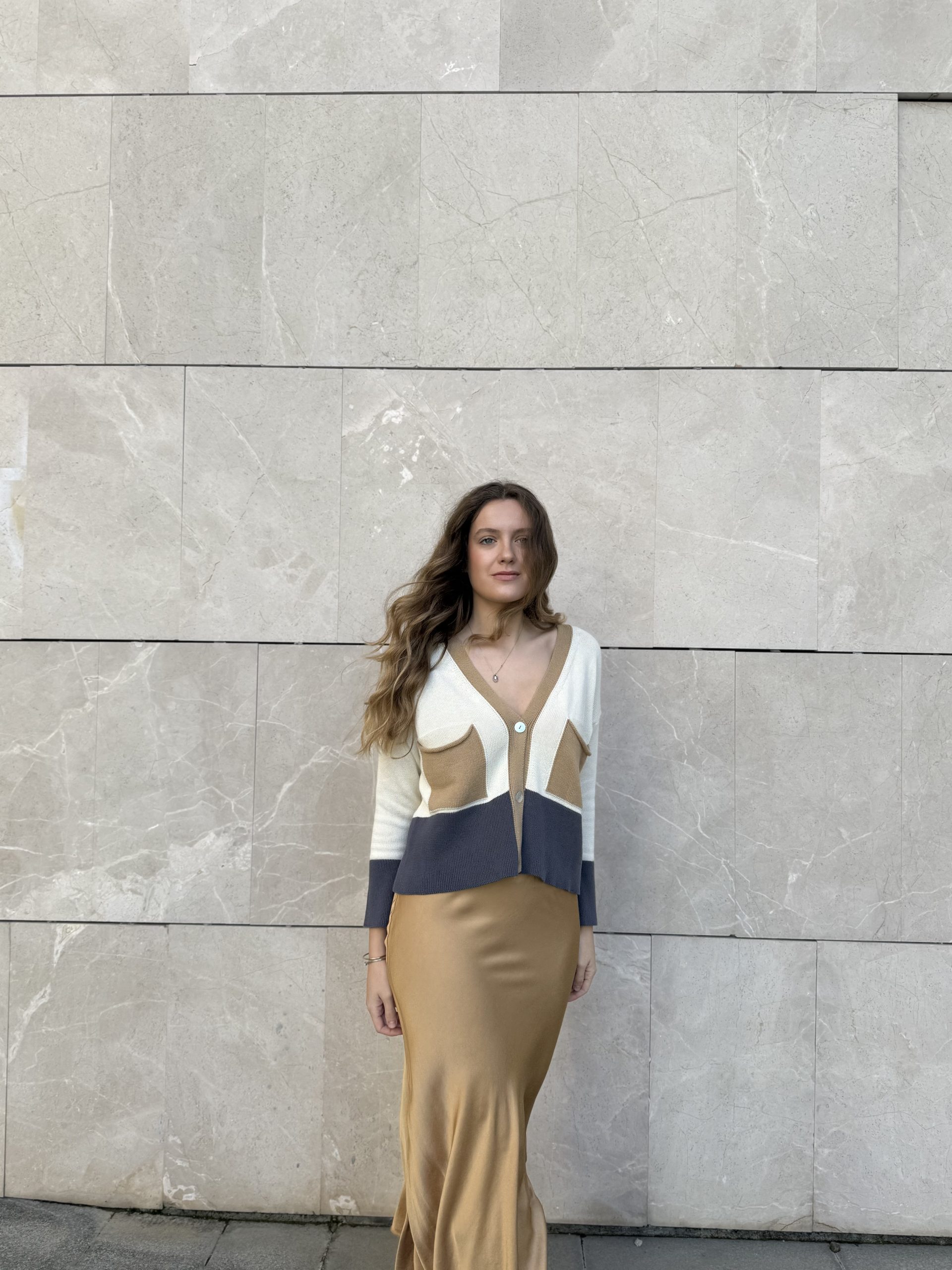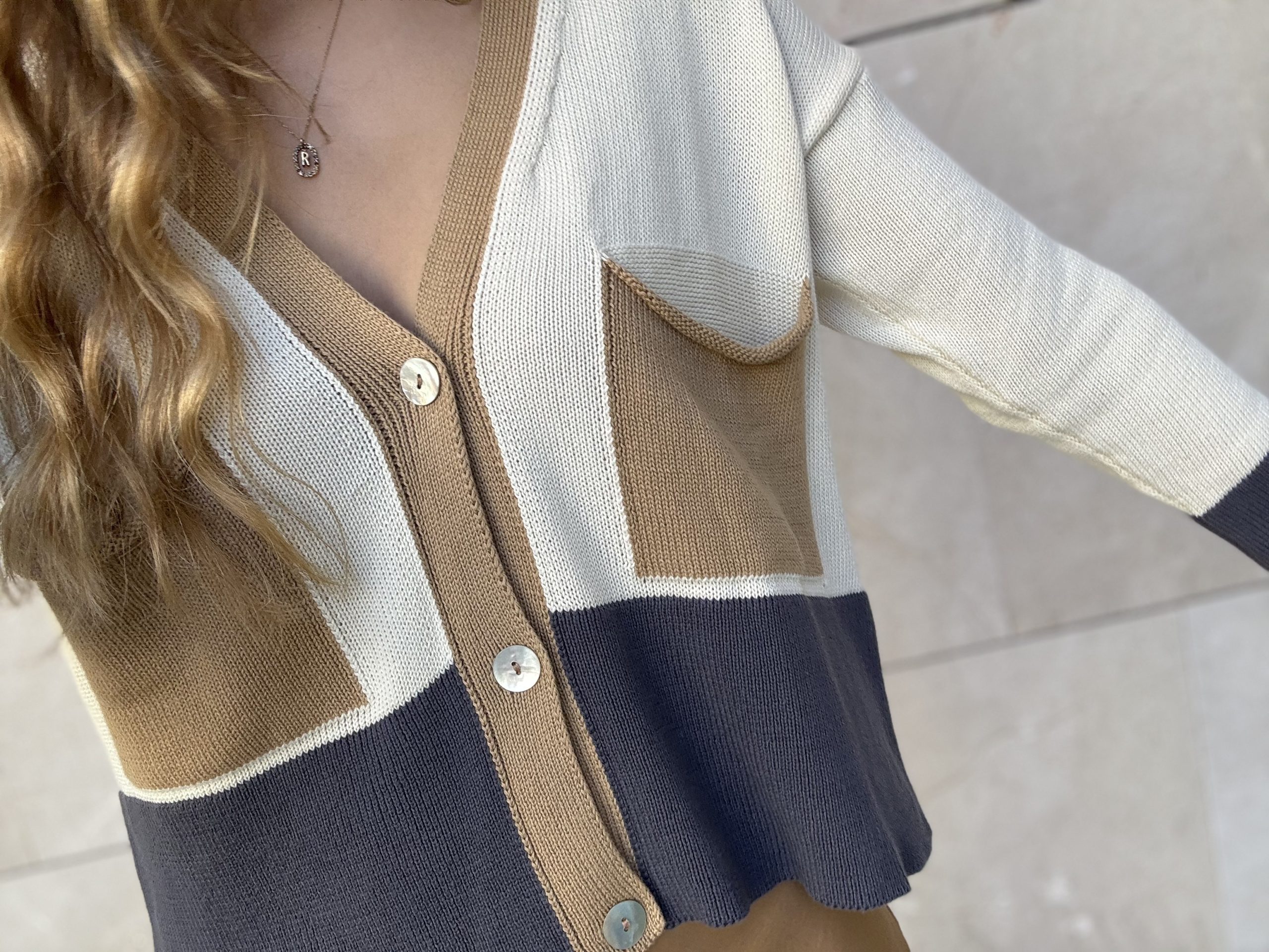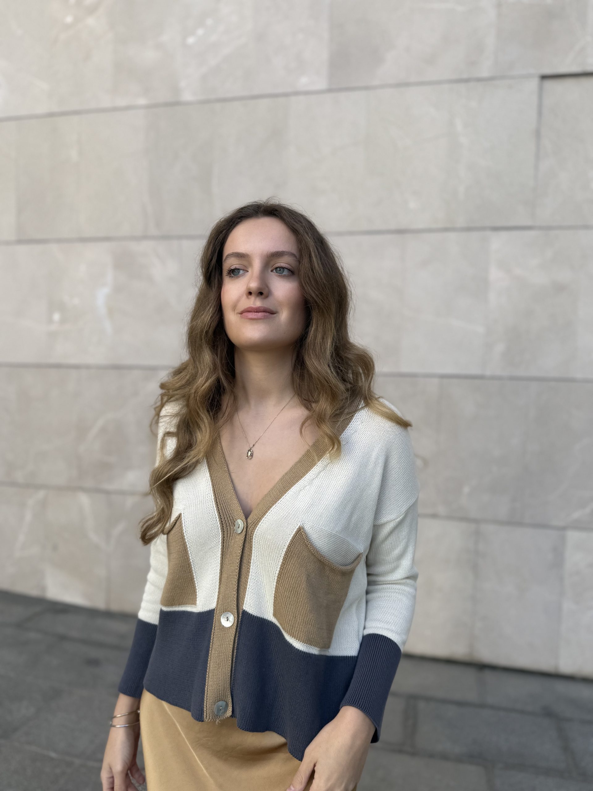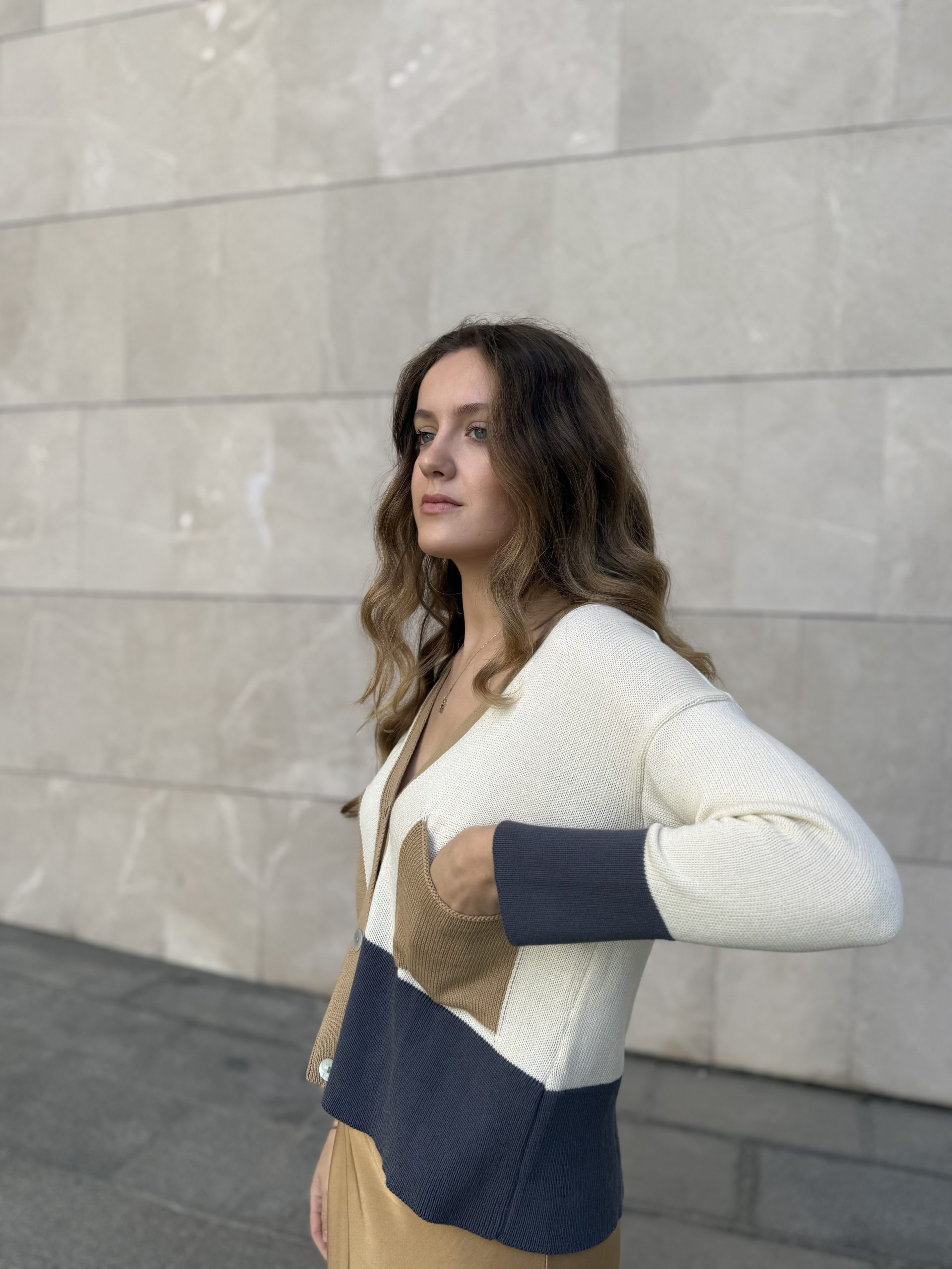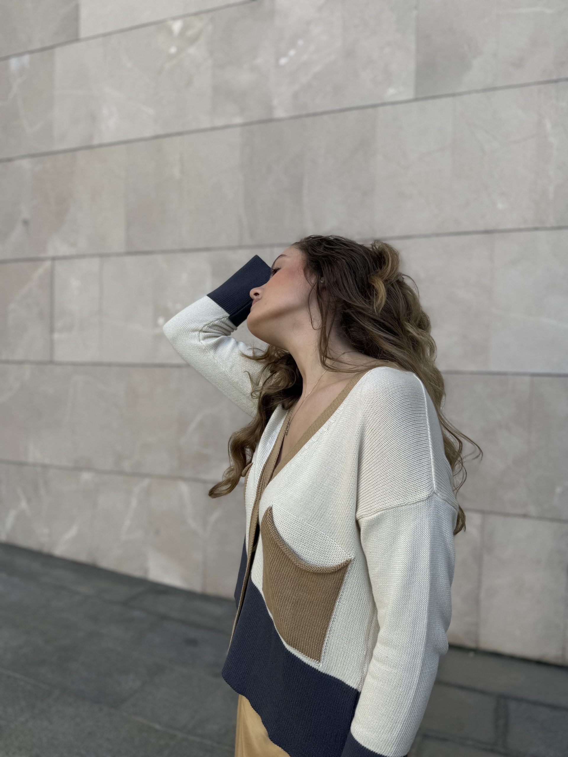 La chaqueta con bolsillos Volterra es una prenda moderna que fusiona estilo y funcionalidad. Su diseño combina tonos crudo, gris y beige, creando una paleta suave y elegante que se adapta fácilmente a cualquier conjunto. Los bolsillos en color contrastado no solo añaden un toque práctico, sino también un detalle distintivo que enriquece el diseño. Confeccionada en un material de alta calidad, su corte favorecedor y su estilo versátil hacen que sea ideal para looks casuales y urbanos, además de aportar un aire sofisticado y relajado a tus outfits.