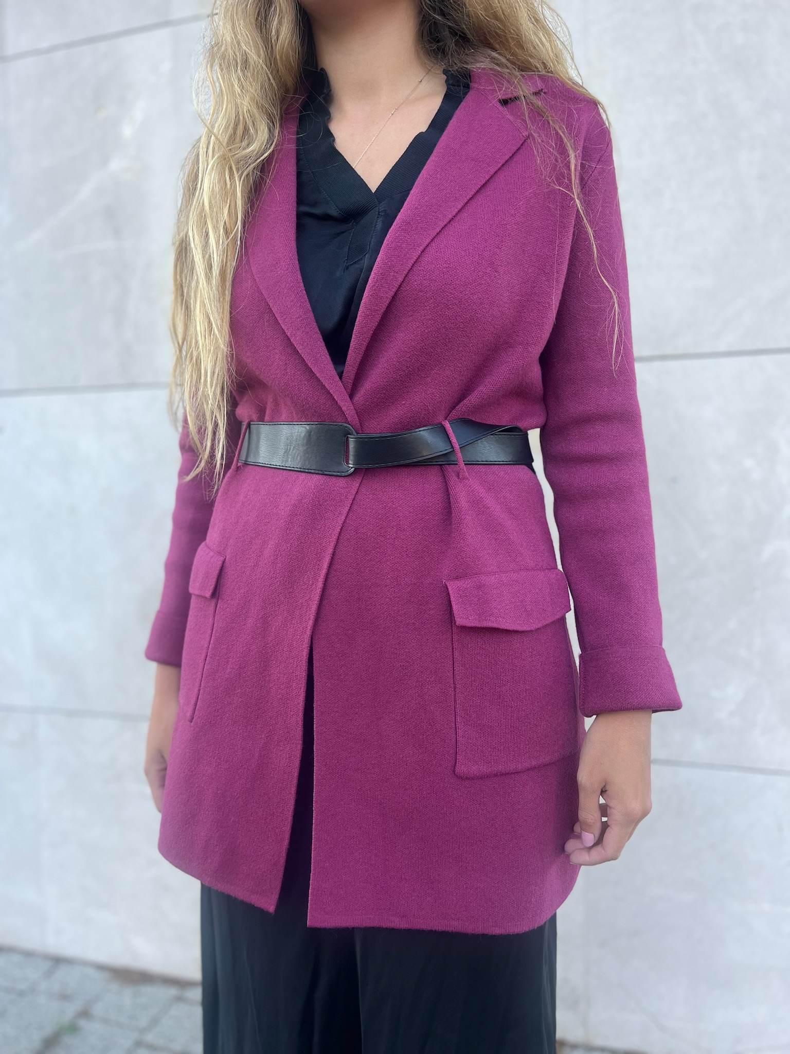 La chaqueta presenta un cinturón que se ajusta a la cintura, permitiendo resaltar la figura y crear una silueta favorecedora. Los bolsillos frontales son prácticos y añaden un detalle funcional, perfectos para llevar pequeños objetos o simplemente para calentar las manos.