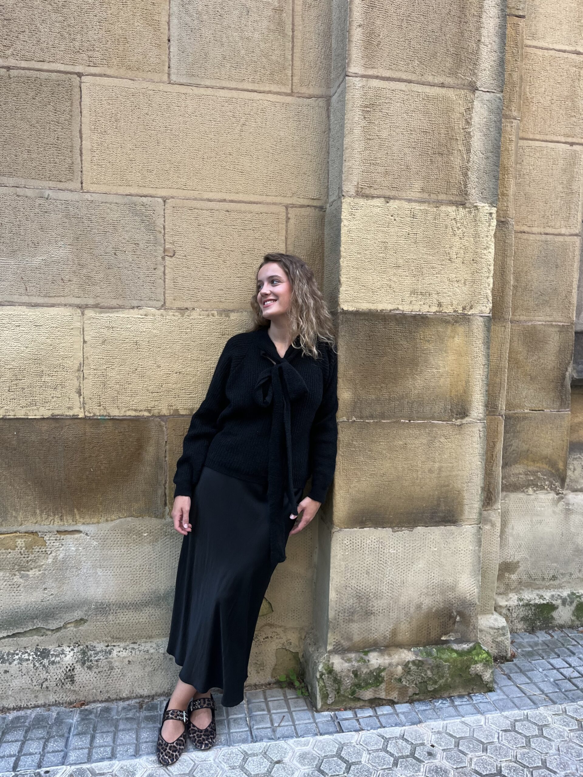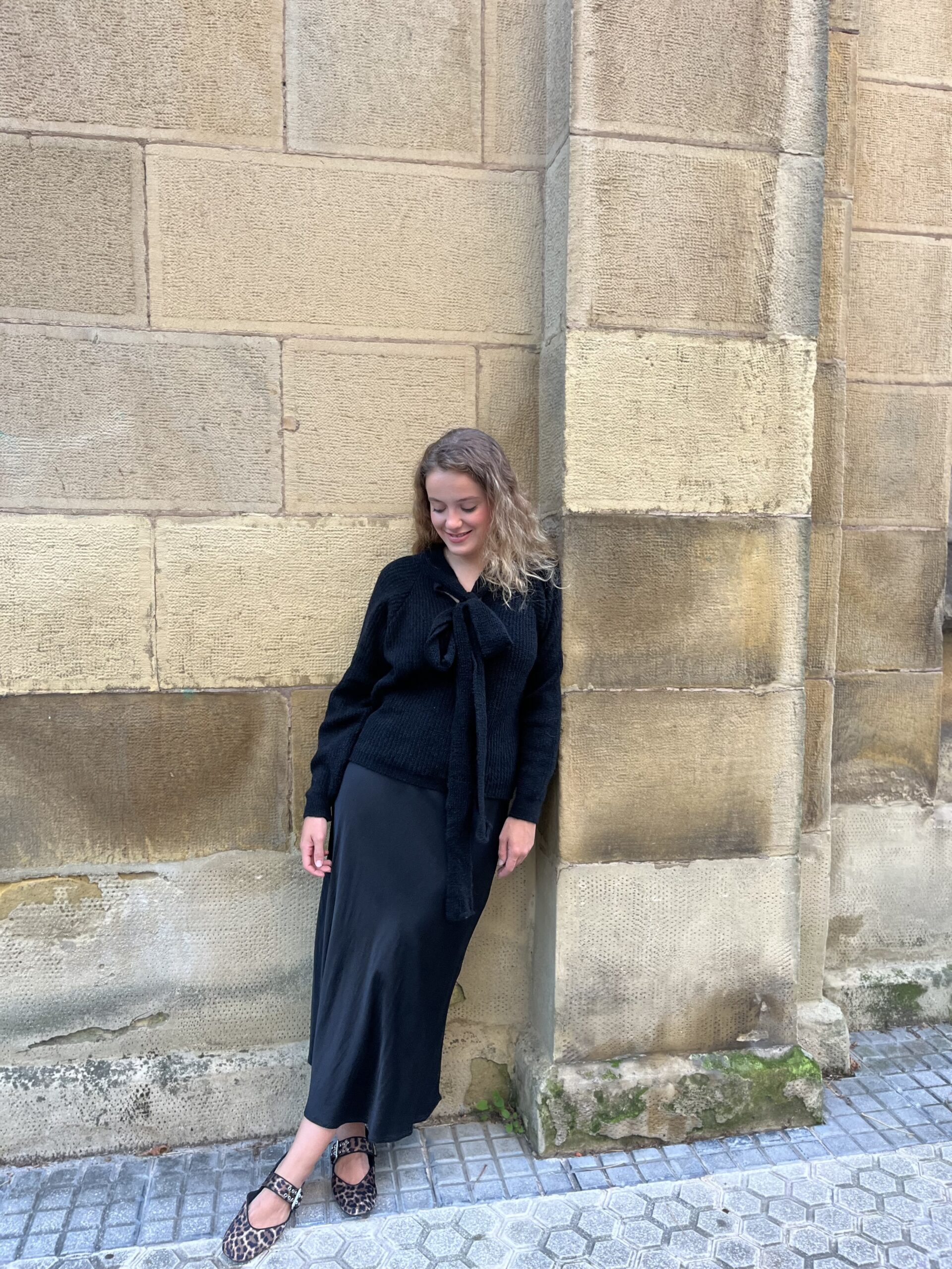 La distintiva lazada en el cuello añade un toque femenino y único, convirtiéndolo en la elección perfecta para cualquier ocasión. Perfecto para combinar con tus prendas favoritas, ya sea para un día casual o una salida especial, el jersey Bruma te permitirá lucir espectacular mientras te sientes cómoda.